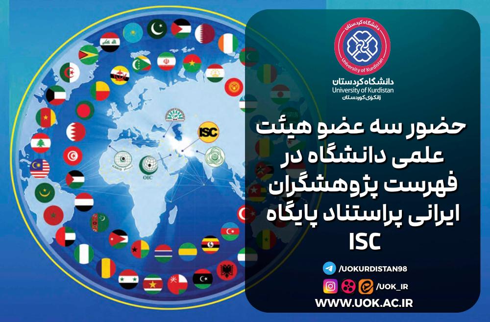 سه عضو هیأت علمی دانشگاە کردستان در فهرست پراستناد ISC