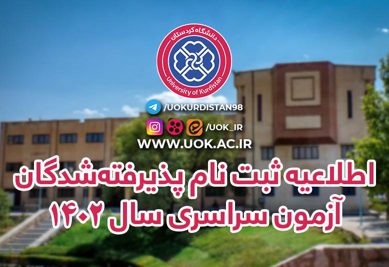 اطلاعیه ثبت نام پذیرفته‌شدگان آزمون سراسری سال 1402 دانشگاه کردستان