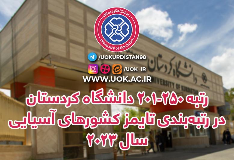 دانشگاه کردستان در رتبه‌بندی تایمز کشورهای آسیایی سال 2023 که با حضور 65 دانشگاه از جمهوری اسلامی ایران انجام شده است، رتبه 250-201 را کسب کرد.