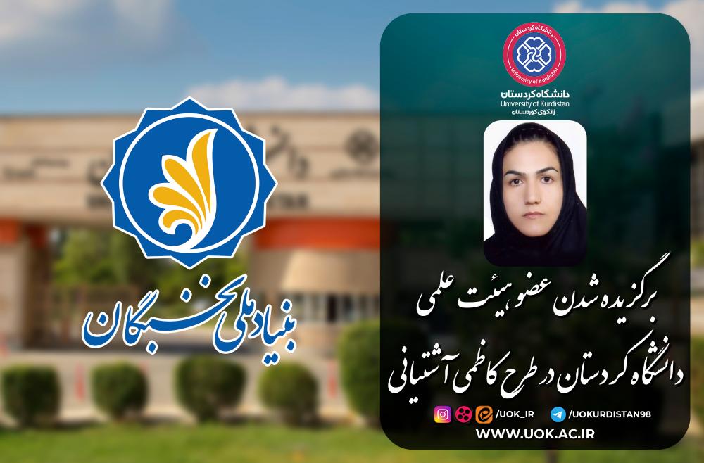Dr. Atefeh Ahmadi, a faculty member at the University of Kurdistan, has been selected for the prestigious "Kazemi Ashtiani Program," thereby becoming eligible for the support facilities of the National Elites Foundation.