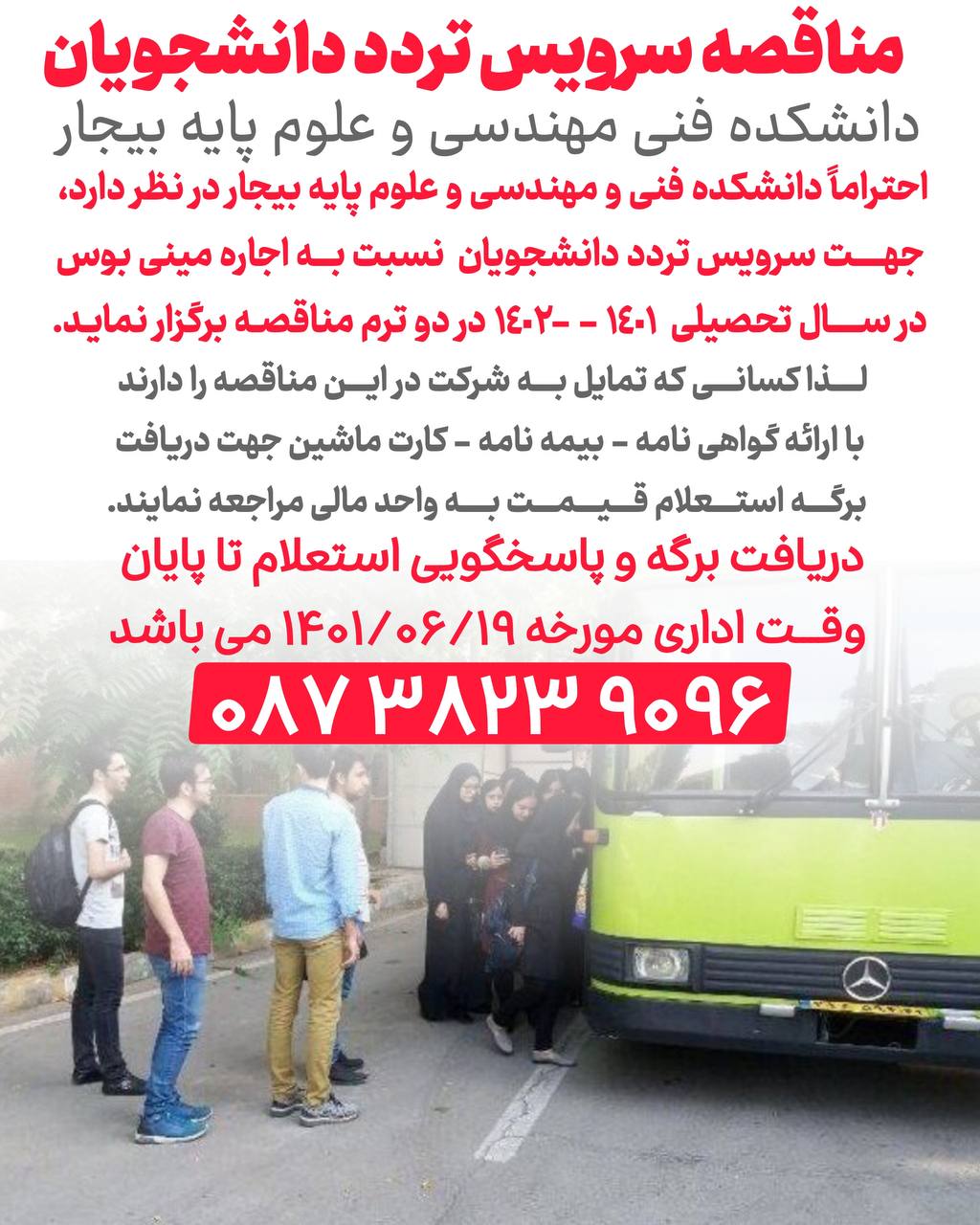 مناقصه سرويس تردد دانشجويان دانشكده مهندسى و علوم پايه بيجار
